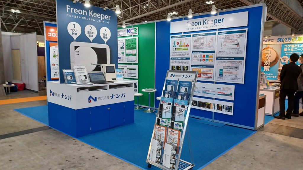 当社では、独自商品のフロン漏えい検知システム「フロンキーパー」、既存の冷凍設備に取り付けるだけで20%~40%の消費電力削減が可能な「KE2省エネコントローラ」、関連会社 新冷工業㈱の独自商品である、店内環境改善システム「フロアヒーティング」を出品させていただきます。